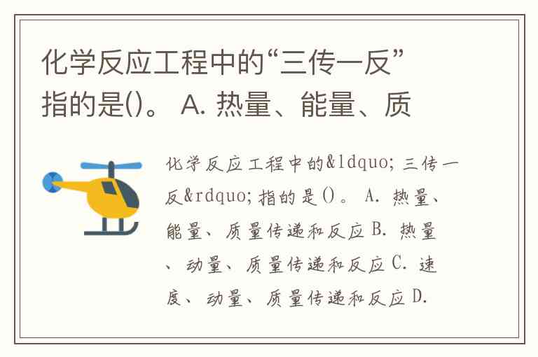 化学反应工程中的“三传一反”指的是()。 A. 热量、能量、质量传递和反应 B. 热量、动量、质量传递和反应 C. 速度、动量、质量传递和反应 D. 热量、压力、质量传递和反应