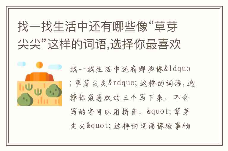 找一找生活中还有哪些像“草芽尖尖”这样的词语,选择你最喜欢的三个写下来。不会写的字可以用拼音。