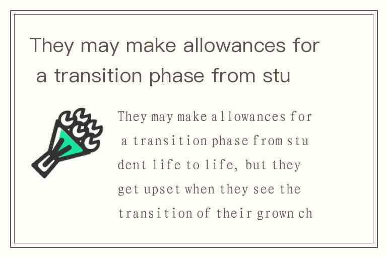 They may make allowances for a transition phase from student life to life, but they get upset when they see the transition of their grown children's live moving away from their expectations and stretching five years to seven years, and beyond. A. Parents are too distressed and frustrated that it is impossible for they to see the transition of their grown children’s live moving away from their expectation. B. Parents may accept their grown children to delay the transition period from student life to life, but they are frustrated when they find their children moving away from what they expected and when they extend the period to too many years. C. Since parents don’t accept their grown children to delay the transition from student life to life, they are upset to see their children’s live moving away from their expectations and spending five or seven more years.