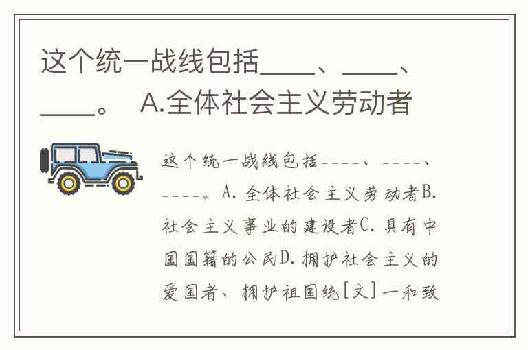 A.全体社会主义劳动者B.社会主义事业的建设者C.具有中国国籍的公民D.拥护社会主义的爱国者、拥护祖国统[文]一和致力于中华民族伟大复兴的爱国[章]者