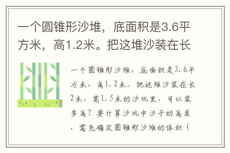 一个圆锥形沙堆,底面积是3.6平方米,高1.2米。把这堆沙装在长2米,宽1.5米的沙坑里,可以装多高?