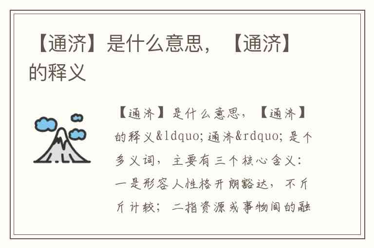 “通济”是个多义词,主要有三个核心含义:一是形容人性格开朗豁达,不斤斤计较;二指资源或事物间的融通调济,相互支持;三形容地理或交通的往来通达,便利顺畅。
