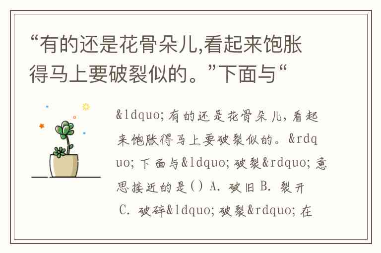 “有的还是花骨朵儿,看起来饱胀得马上要破裂似的。”下面与“破裂”意思接近的是( ) A. 破旧 B. 裂开 C. 破碎