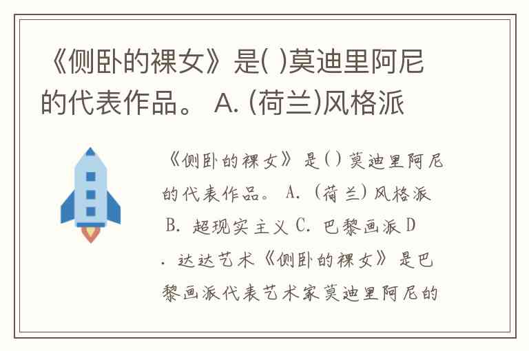 《侧卧的裸女》是( )莫迪里阿尼的代表作品。 A. (荷兰)风格派 B. 超现实主义 C. 巴黎画派 D. 达达艺术