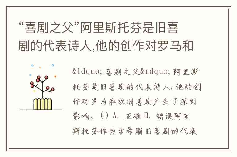 “喜剧之父”阿里斯托芬是旧喜剧的代表诗人,他的创作对罗马和欧洲喜剧产生了深刻影响。( ) A. 正确 B. 错误