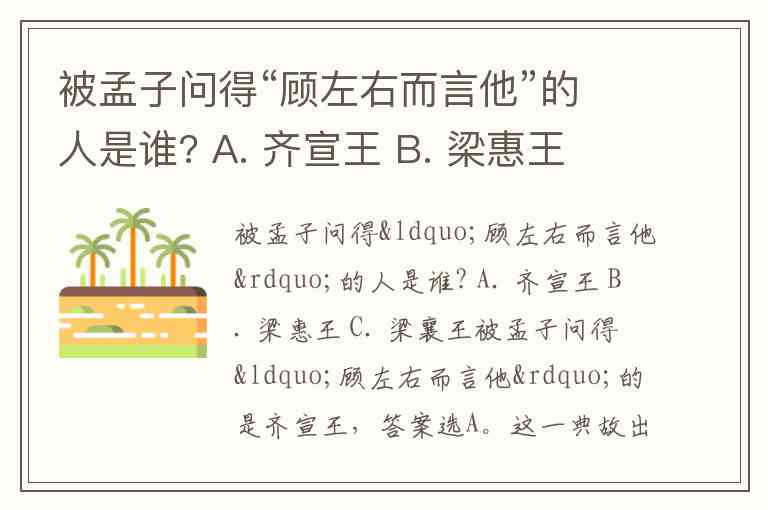 被孟子问得“顾左右而言他”的人是谁? A. 齐宣王 B. 梁惠王 C. 梁襄王