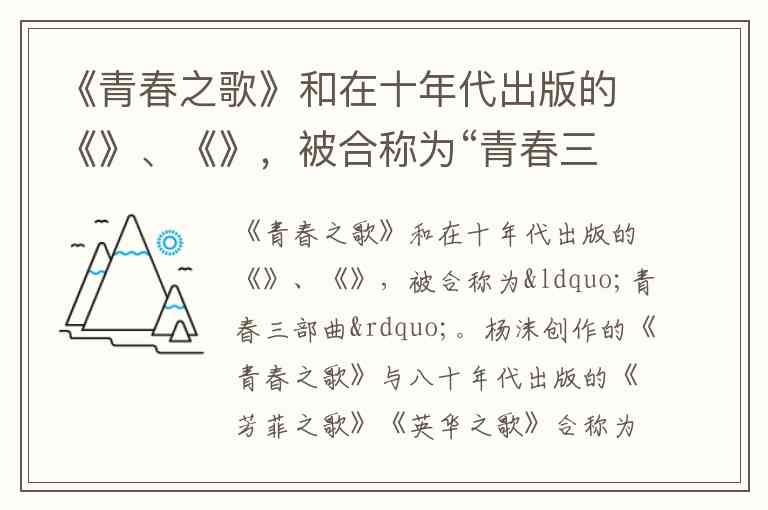《青春之歌》和在十年代出版的《》、《》,被合称为“青春三部曲”。