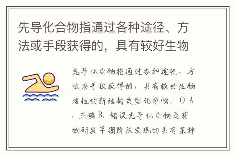 先导化合物指通过各种途径、方法或手段获得的,具有较好生物活性的新结构类型化学物。() A. 正确 B. 错误
