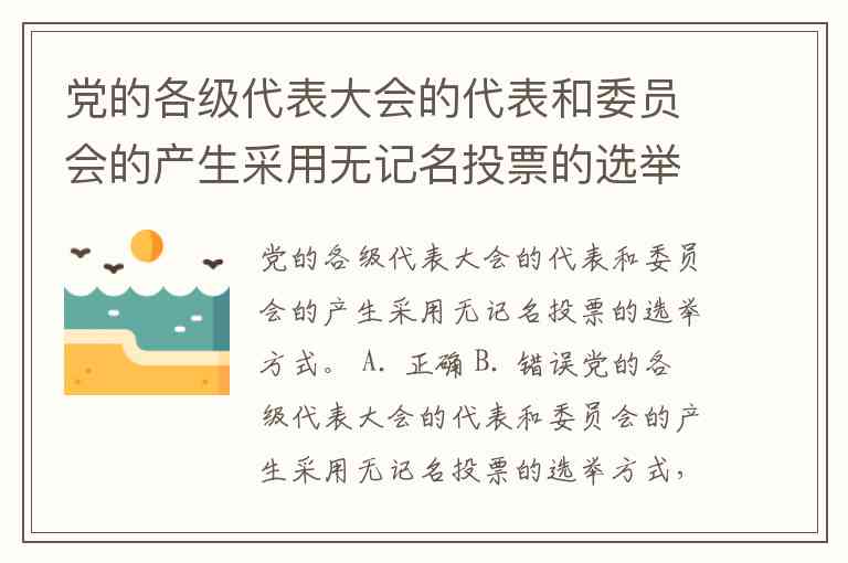 党的各级代表大会的代表和委员会的产生采用无记名投票的选举方式。 A. 正确 B. 错误