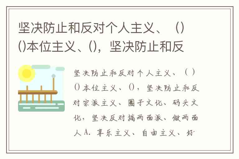 坚决防止和反对个人主义、()()本位主义、(),坚决防止和反对宗派主义、圈子文化、码头文化,坚决反对搞两面派、做两面人 A. 享乐主义、自由主义、好人主义 B. 分散主义、山头主义、好人主义 C. 分散主义、自由主义、好人主义 D. 分散主义、自由主义、享乐主义
