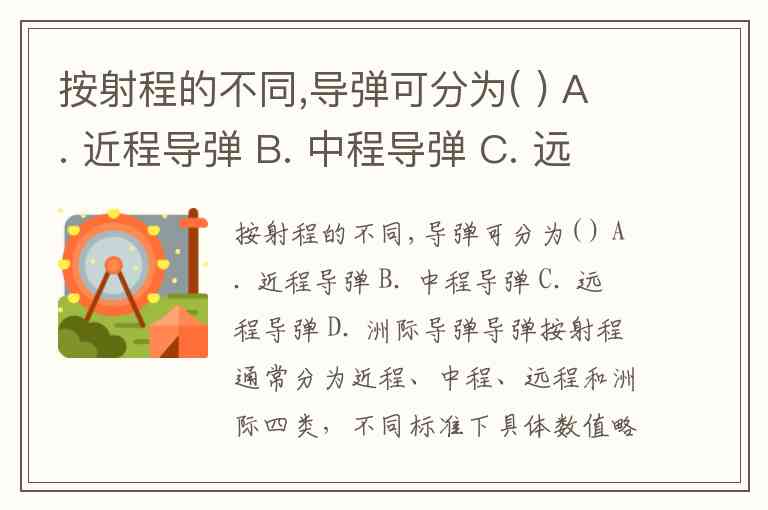 若需更精准的射程定义,需结合具体军事条约或国家标准,但从本题选项看,A(近程)、B(中程)、C(远程)、D(洲际)均为国际通用的基本分类类型。这一分类不仅是军事技术的体现,更反映了国家战略威慑能力的层级构建。