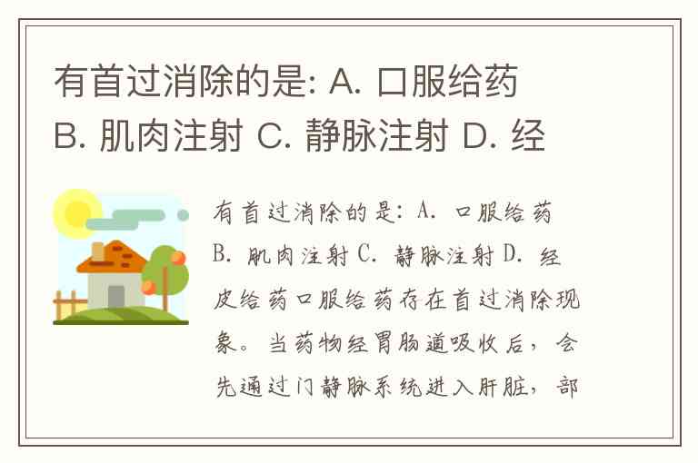 有首过消除的是: A. 口服给药 B. 肌肉注射 C. 静脉注射 D. 经皮给药