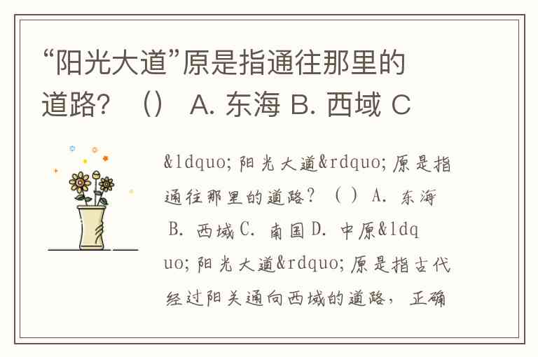 “阳光大道”原是指通往那里的道路?() A. 东海 B. 西域 C. 南国 D. 中原