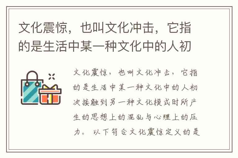 符合文化震惊定义的是 B选项。文化震惊的核心要素包括:两种差异显著的文化模式、初次接触、思想混乱与心理压力。