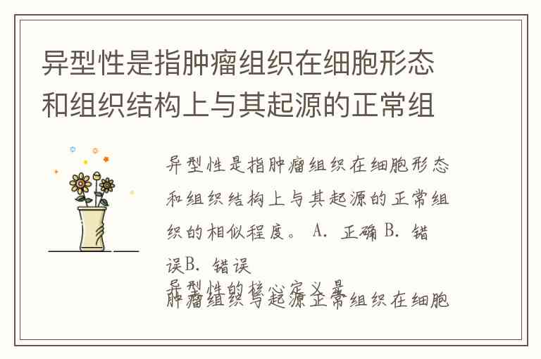 异型性是指肿瘤组织在细胞形态和组织结构上与其起源的正常组织的相似程度。 A. 正确 B. 错误