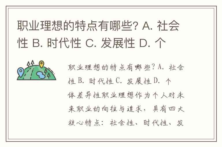 职业理想的特点有哪些? A. 社会性 B. 时代性 C. 发展性 D. 个体差异性