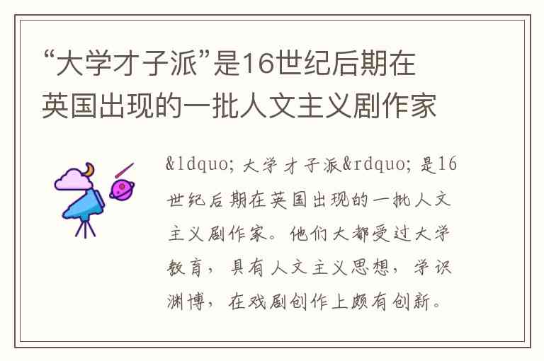 “大学才子派”是16世纪后期在英国出现的一批人文主义剧作家。他们大都受过大学教育,具有人文主义思想,学识渊博,在戏剧创作上颇有创新。() A. 正确 B. 错误