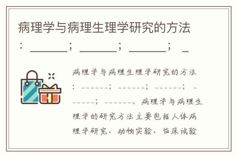 病理学与病理生理学研究的方法:______;______;______; ______;______。