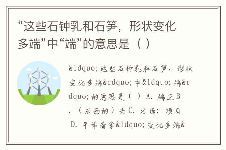 “这些石钟乳和石笋,形状变化多端”中“端”的意思是( ) A. 端正 B. (东西的)头 C. 方面;项目 D. 平举着拿