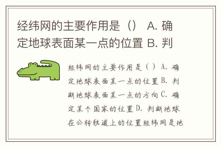 经纬网的主要作用是() A. 确定地球表面某一点的位置 B. 判断地球表面某一点的方向 C. 确定某个国家的位置 D. 判断地球在公转轨道上的位置