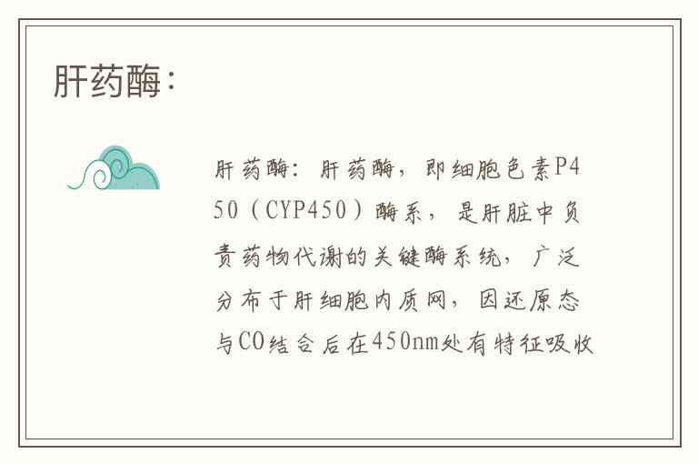 肝药酶,即细胞色素P450(CYP450)酶系,是肝脏中负责药物代谢的关键酶系统,广泛分布于肝细胞内质网,因还原态与CO结合后在450nm处有特征吸收峰而得名。作为人体最主要的药物代谢酶系,它包含CYP1A2、CYP2C9、CYP3A4等多个亚型,共同参与约60%以上药物的氧化、还原和水解反应,通过引入羟基、双键等极性基团增强药物水溶性,使其更易通过尿液或胆汁排出体外。