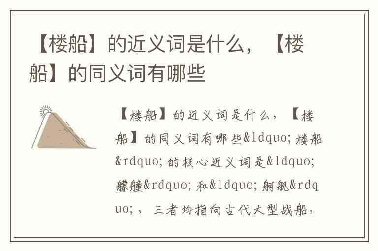 【楼船】的近义词是什么,【楼船】的同义词有哪些