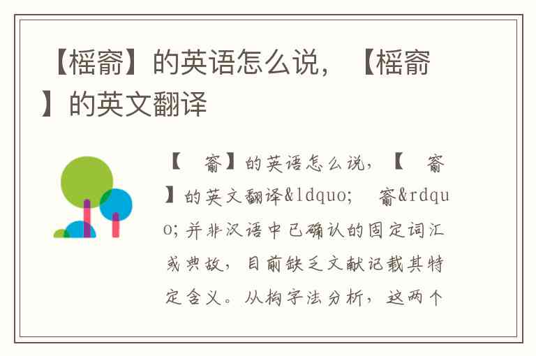由于“榣窬”未见于权威古籍或现代汉语词典,上述译法为基于构字的推测。若该词出自特定文献、人名或虚构作品,建议结合上下文进一步考证。实际使用中,可标注拼音“Yáoyú”并附加简要注释,如“a combination of 'swaying tree' and 'hollowed cavity' (interpreted from character structures)”。
