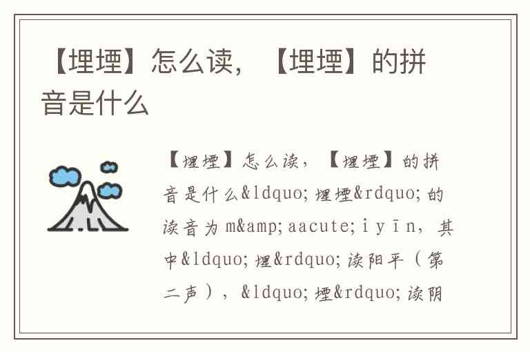 “埋堙”的读音为 mái yīn,其中“埋”读阳平(第二声),“堙”读阴平(第一声)。这一读音在多部权威词语解释和注音资料中保持一致,如标注的拼音“mái yīn”及对应的注音符号“ㄇㄞˊ ㄧㄣ”所示。
