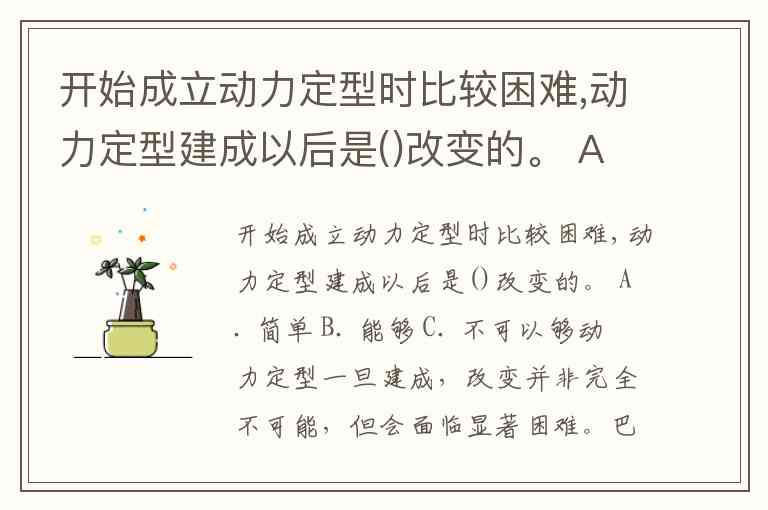 开始成立动力定型时比较困难,动力定型建成以后是()改变的。 A. 简单 B. 能够 C. 不可以够