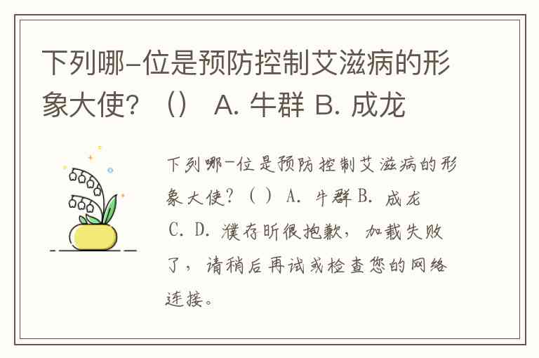 下列哪-位是预防控制艾滋病的形象大使? () A. 牛群 B. 成龙 C. D. 濮存昕