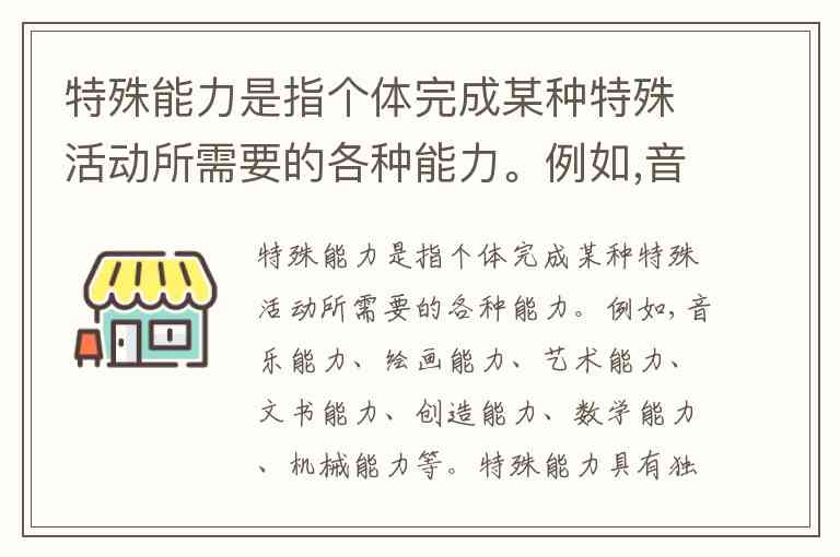 特殊能力是指个体完成某种特殊活动所需要的各种能力。例如,音乐能力、绘画能力、艺术能力、文书能力、创造能力、数学能力、机械能力等。特殊能力具有独特的能力结构,例如,运动能力由爆发力、耐力、柔韧性、灵活性等要素级组成。特殊能力的形成与发展既有赖于个体的先天素质和特殊结构,也需要适当的环境和教育。分析某种特殊能力的组成要素以及结构,必须采取适当的方法和手段进行心理测量。特殊能力测验,又称为特殊能力性向测验,可以确定不同个体在某一特殊能力方面具有的水平,对个体的职业定向、选拔和专门人才的安排,尤其对特殊儿童的发现和培养具有重要的现实意义。根据上述文段说法错误的是: A. 一种特殊能力往往由多种要素组成 B. 教育对于特殊能力的形成有重要意义 C. 心理测量是特殊能力性向测验的重要部分 D. 特殊能力测验有助于选拔人才