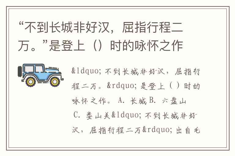 “不到长城非好汉,屈指行程二万。”是登上()时的咏怀之作。 A. 长城 B. 六盘山 C. 娄山关
