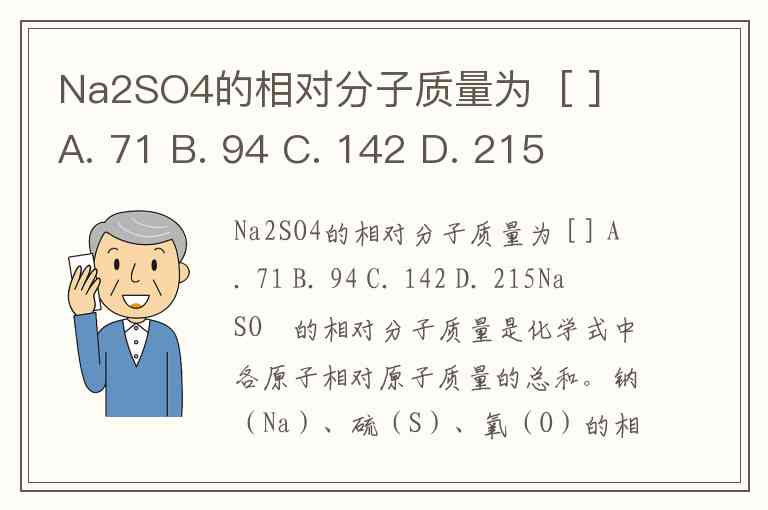 Na2SO4的相对分子质量为 [ ] A. 71 B. 94 C. 142 D. 215