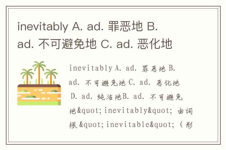 inevitably A. ad. 罪恶地 B. ad. 不可避免地 C. ad. 恶化地 D. ad. 纯洁地