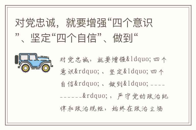 对党忠诚,就要增强“四个意识”、坚定“四个自信”、做到“__________”,严守党的政治纪律和政治规矩,始终在政治立场、政治方向、政治原则、政治道路上同党中央保持高度一致。