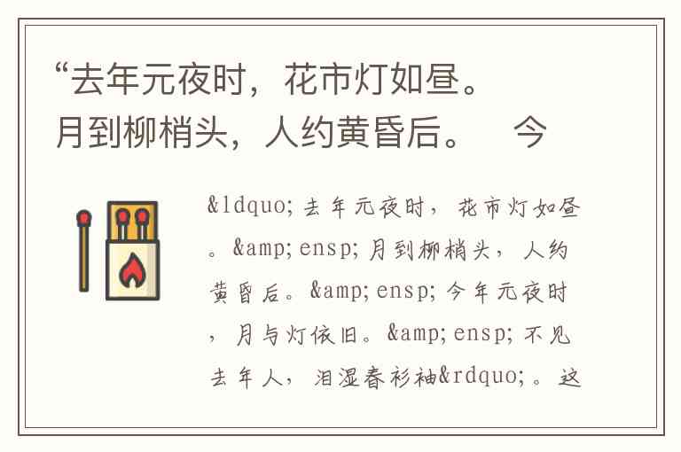 “去年元夜时,花市灯如昼。 月到柳梢头,人约黄昏后。 今年元夜时,月与灯依旧。 不见去年人,泪湿春衫袖”。这首诗写的是()。 A. 元宵节 B. 七夕节 C. 重阳节 D. 除夕