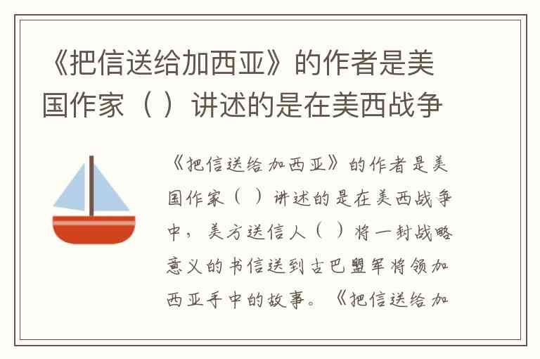 《把信送给加西亚》的作者是美国作家( )讲述的是在美西战争中,美方送信人( )将一封战略意义的书信送到古巴盟军将领加西亚手中的故事。