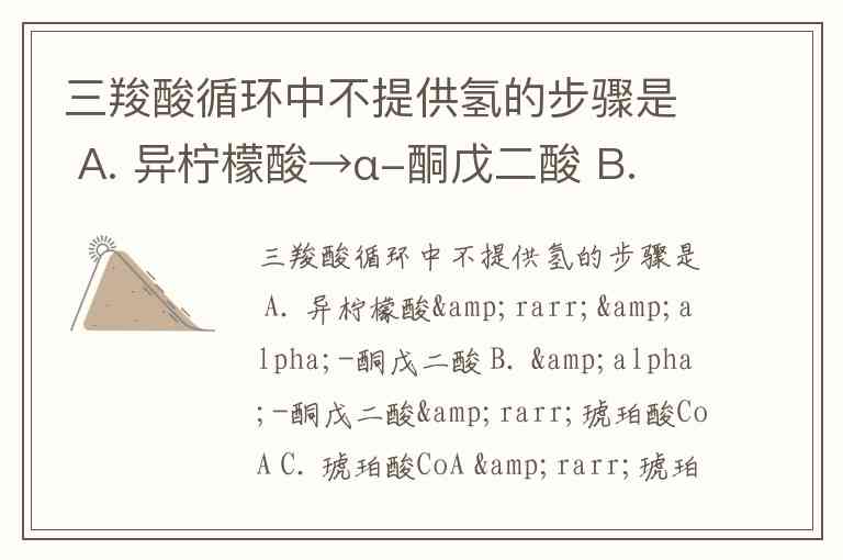 三羧酸循环中不提供氢的步骤是 A. 异柠檬酸→α-酮戊二酸 B. α-酮戊二酸→琥珀酸CoA C. 琥珀酸CoA →琥珀酸 D. 琥珀酸→延胡索酸 E. 苹果酸→草酰乙酸