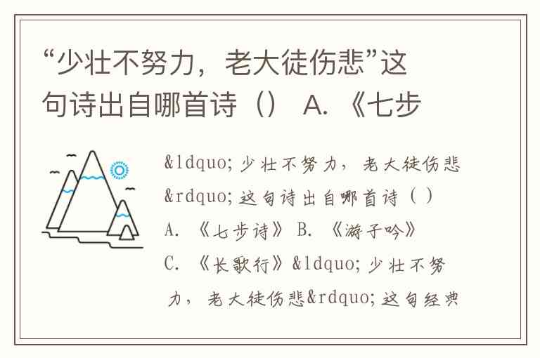 “少壮不努力,老大徒伤悲”这句诗出自哪首诗() A. 《七步诗》 B. 《游子吟》 C. 《长歌行》