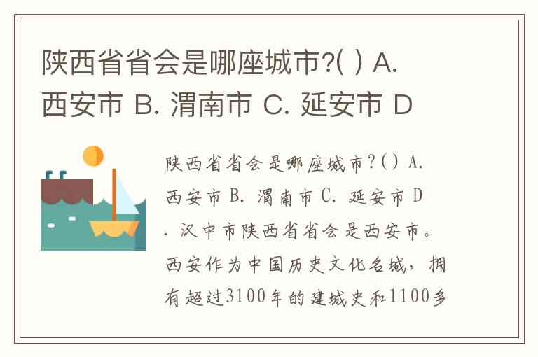 陕西省省会是哪座城市?( ) A. 西安市 B. 渭南市 C. 延安市 D. 汉中市