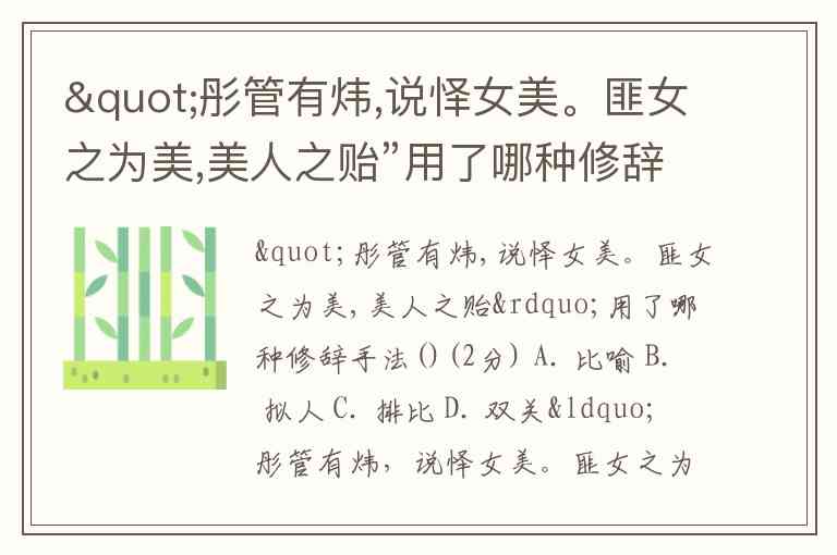 "彤管有炜,说怿女美。匪女之为美,美人之贻”用了哪种修辞手法()(2分) A. 比喻 B. 拟人 C. 排比 D. 双关