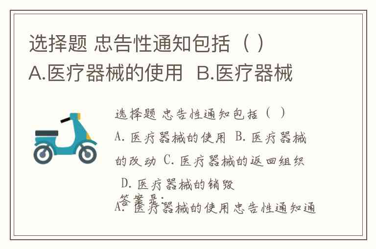 选择题 忠告性通知包括( ) A.医疗器械的使用 B.医疗器械的改动 C.医疗器械的返回组织 D.医疗器械的销毁
