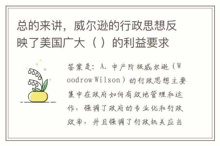 因此,威尔逊的行政思想主要是代表了美国中产阶级的利益。