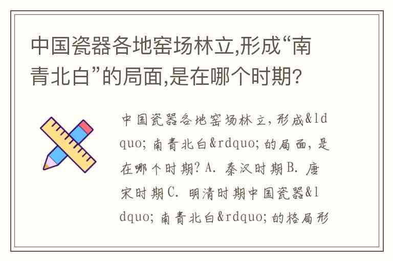 中国瓷器各地窑场林立,形成“南青北白”的局面,是在哪个时期? A. 秦汉时期 B. 唐宋时期 C. 明清时期