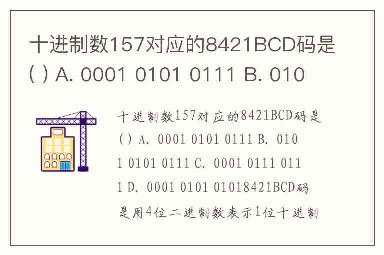 十进制数157对应的8421BCD码是( ) A. 0001 0101 0111 B. 0101 0101 0111 C. 0001 0111 0111 D. 0001 0101 0101