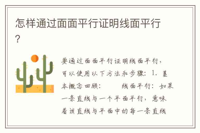 要通过面面平行证明线面平行,可以使用以下方法和步骤: