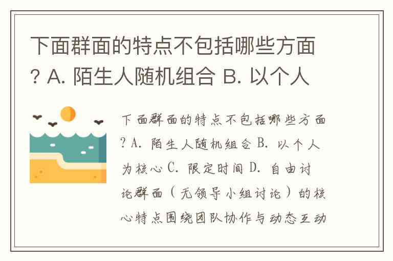 下面群面的特点不包括哪些方面? A. 陌生人随机组合 B. 以个人为核心 C. 限定时间 D. 自由讨论