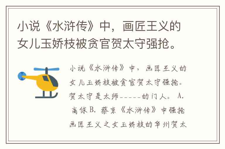 小说《水浒传》中,画匠王义的女儿玉娇枝被贪官贺太守强抢。贺太守是太师_____的门人。 A. 高俅 B. 蔡京