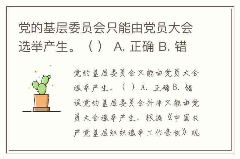 党的基层委员会只能由党员大会选举产生。( ) A. 正确 B. 错误
