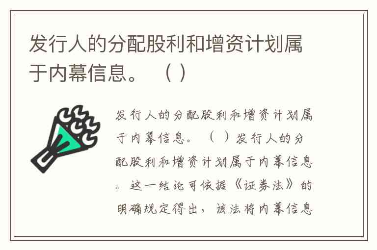 发行人的分配股利和增资计划属于内幕信息。 ( )